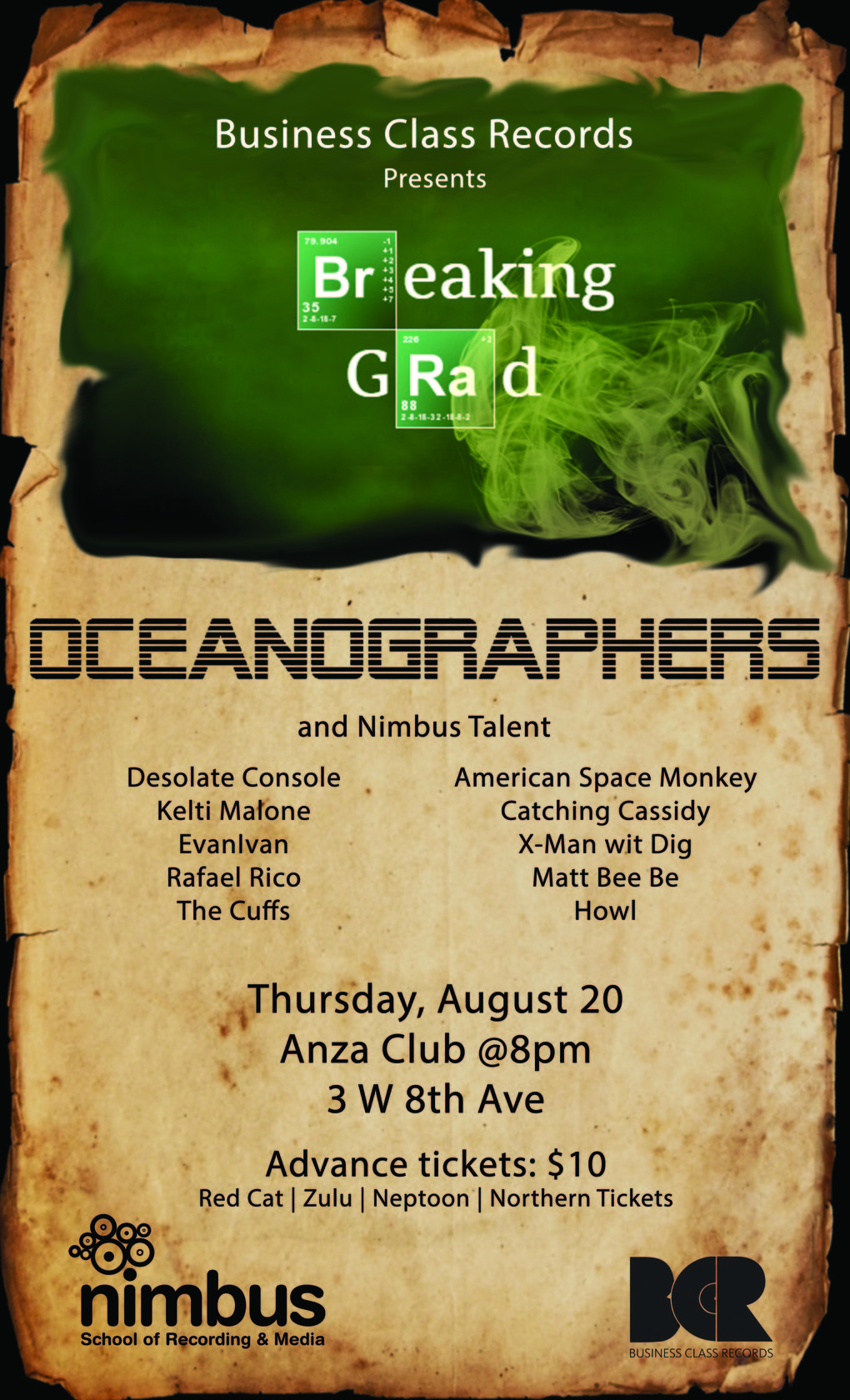 BREAKING GRAD! starring: Oceanographers, X-man wit Dig, Desolate Console, Kelti Malone, Evan Ivan, Rafael Rico, THE CUFFS, Catching Cassidy, Matt Beebe, American Space Monkey
