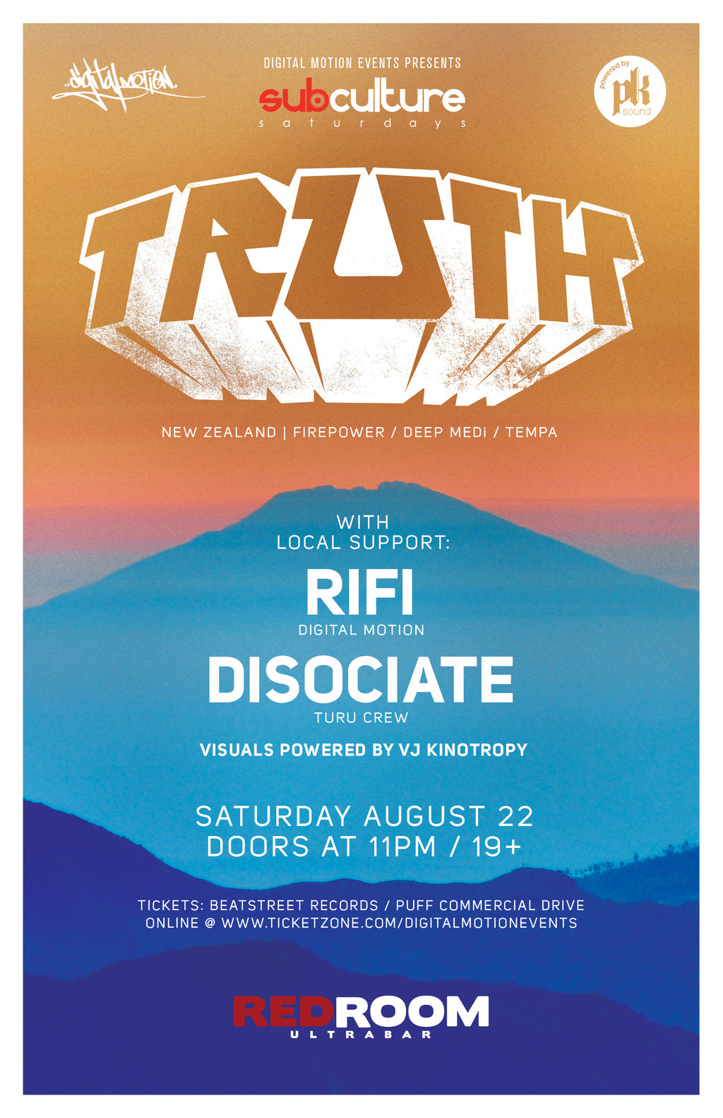 SUBcultureSaturdays: TRUTH , RIFI, Disociate @ The Red Room Aug 22 2015 - Jan 11th @ The Red Room