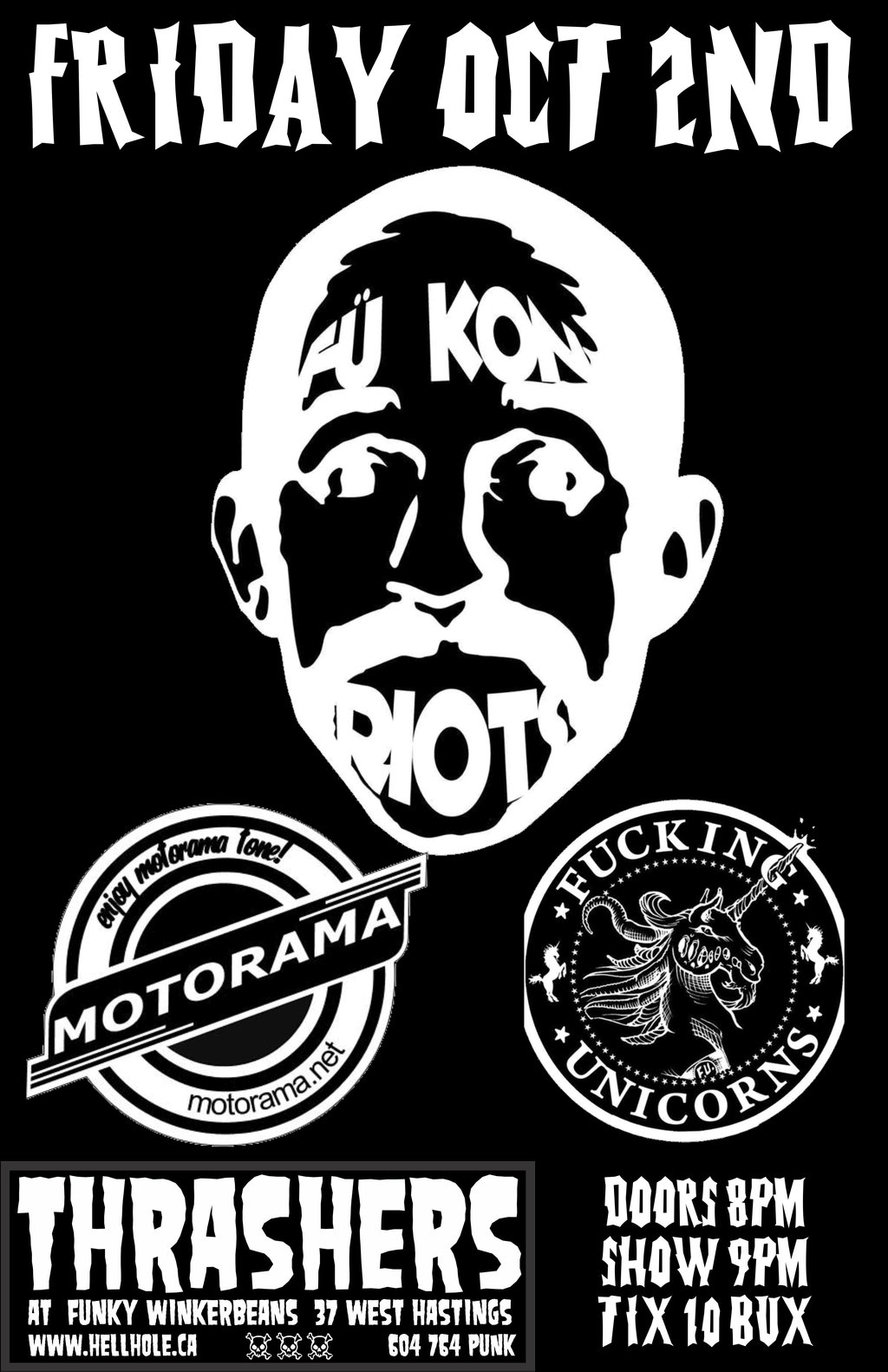 Fu Kon Riots, Motorama, Fucking Unicorns @ Funky Winker Beans Oct 2 2015 - Feb 12th @ Funky Winker Beans