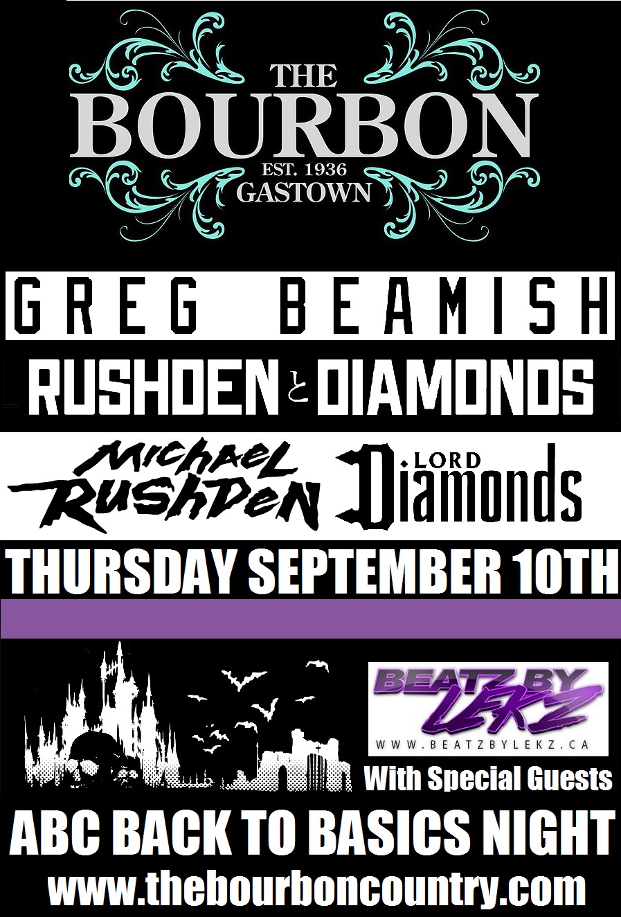ABC - Back To The Basics: Greg Beamish, Rushden & Diamonds, Michael Rushden, Lord Diamonds, BeatzByLekz @ The Bourbon Sep 10 2015 - Feb 13th @ The Bourbon