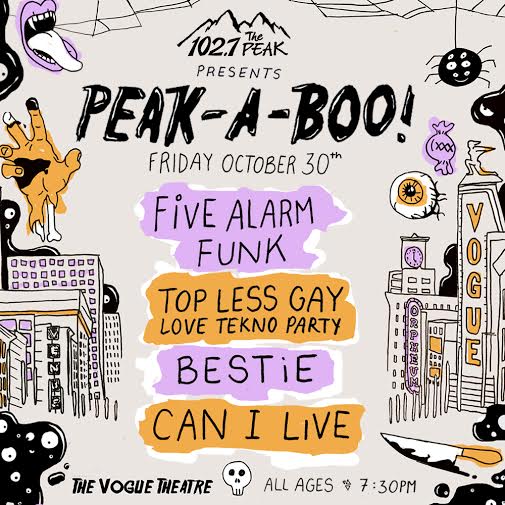 MRG Concerts and 102.7 THE PEAK are proud to present “Peak-A-Boo” at the Vogue Theatre on Friday, October 30th. Featuring live music from some of Vancouver’s favorite acts