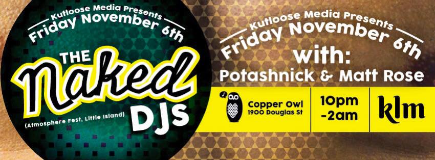 Kutloose media presents: Naked DJs @ Copper Owl Nov 6 2015 - Nov 14th @ Copper Owl