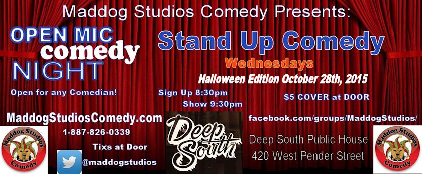 Wednesday Show Date: 10/28/2015 - Stand Up Comedy Open Mic in Vancouver at Deep South Public House presented by Maddog Studios Comedy.