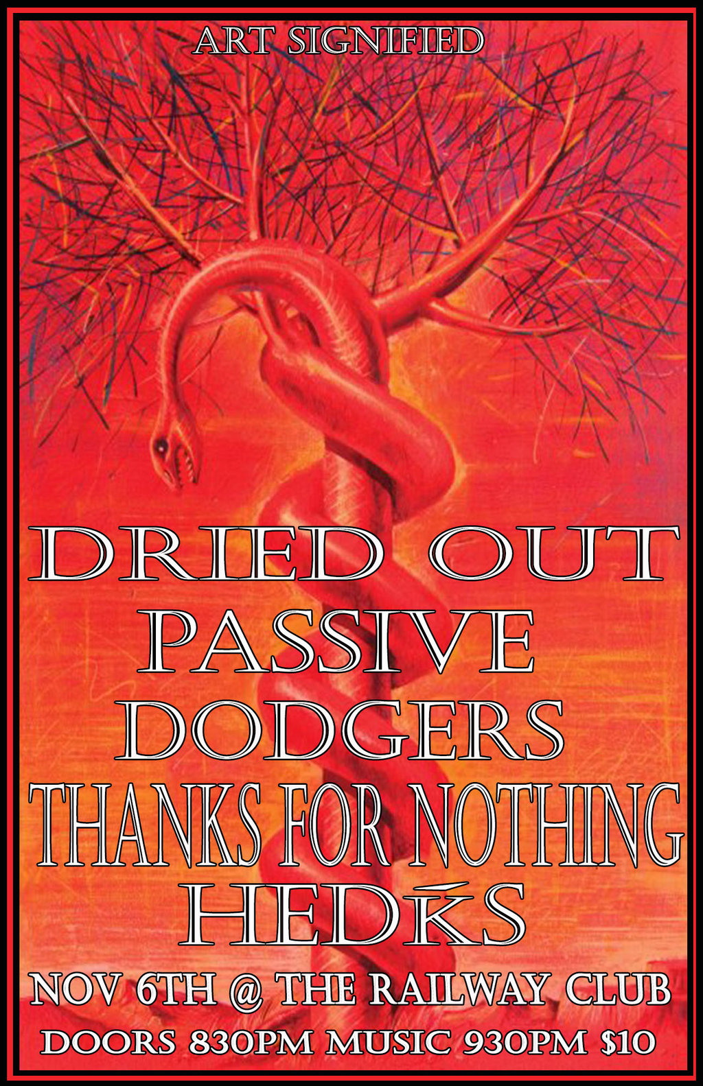 Dried Out, Passive, Dodgers, Thanks For Nothing, HEDḰS @ Railway Club Nov 6 2015 - Dec 25th @ Railway Club