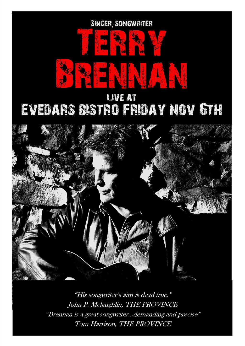 Award Winning Rhythm & Roots Singer/Songwriter: Terry Brennan @ Evedar's Bistro Nov 6 2015 - Feb 12th @ Evedar's Bistro