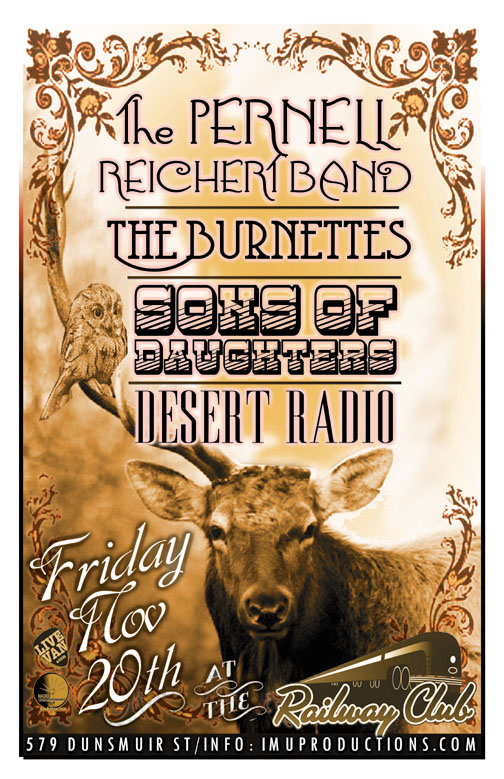 . Friday, November 20th IMU presents The PERNELL REICHERT BAND, The BURNETTES, SONS OF DAUGHTERS & DESERT RADIO @ The Railway Club, 579 Dunsmuir . Show 9:30pm / $10 cover
