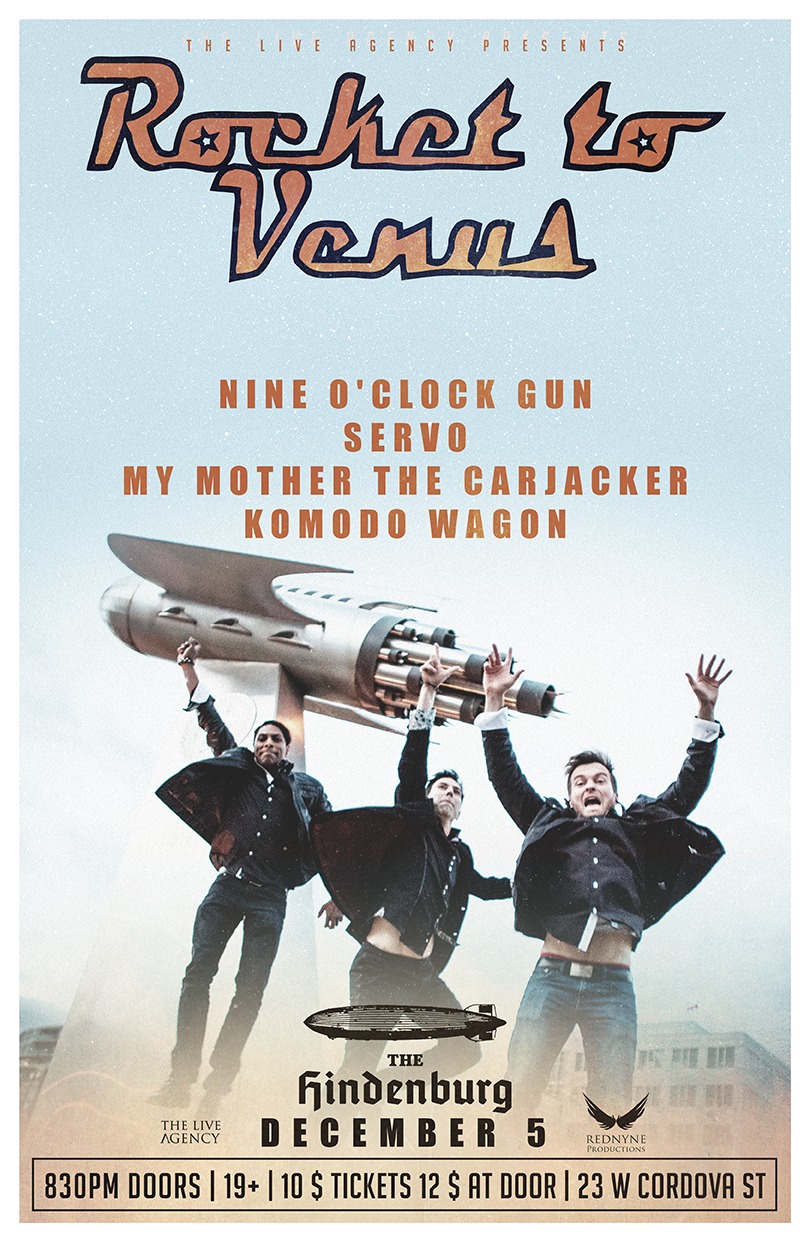 Rocket To Venus , Nine O'Clock Gun, Servo, My Mother The Carjacker, Komodo Wagon @ The Hindenburg Dec 5 2015 - Feb 11th @ The Hindenburg