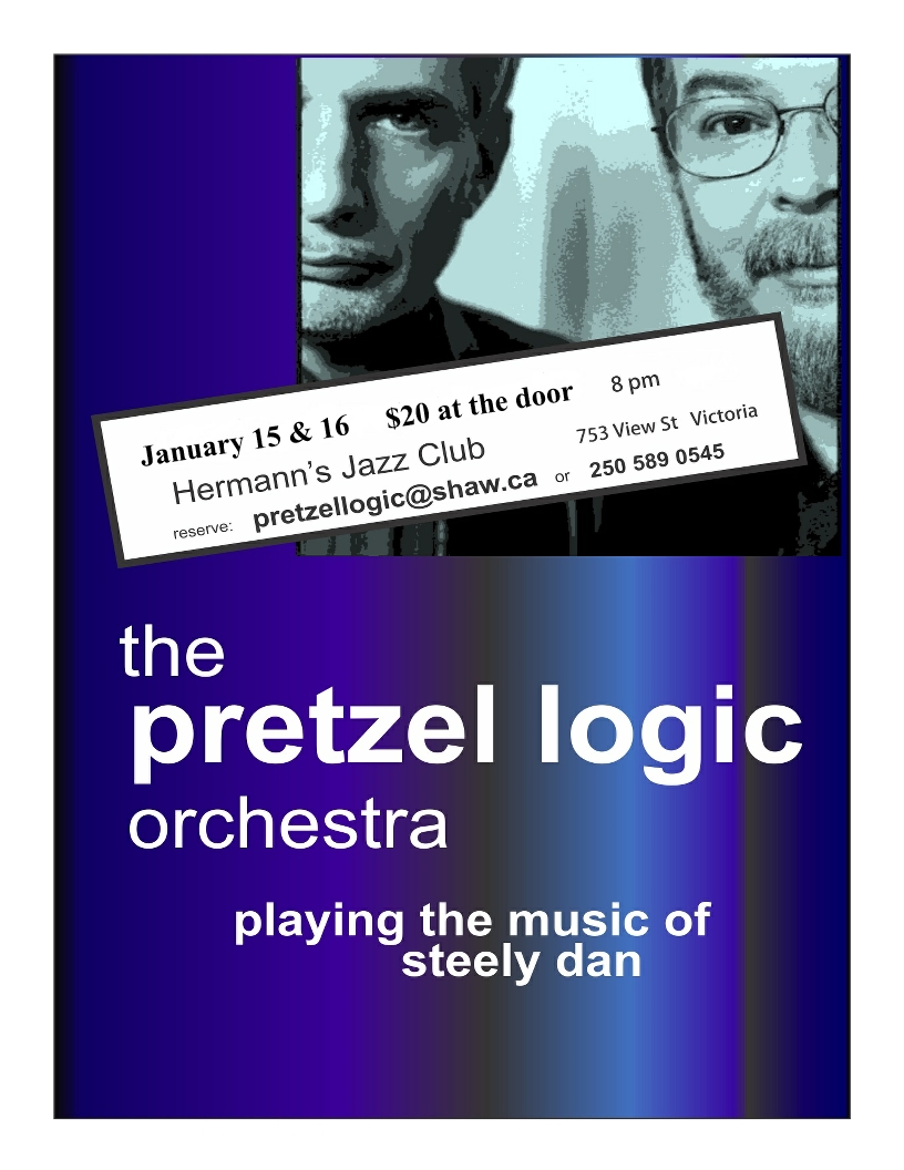 The Pretzel Logic Orchestra is: Tom Bowler - guitar and vocals, Don McMeckan - guitar and vocals, Karel Roessingh – keys, Joey Smith - bass and vocals (Friday night), Sean Drabitt - bass (Saturday night), Joe Kovacs - drums and vocals, Toni Hammond – vocals, Doug Awai – sax, Bruce Hurn – trumpet, Nick LaRiviere - Trombone.