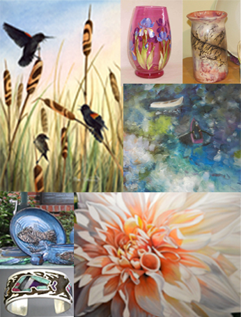 For 20 years Visions Art Tour Society has been presenting Studio Tours throughout the Cowichan Valley, and for the past four years has been presenting Visions Artists in Gallery shows as well. These Gallery shows have taken the artists to the Maritime Centre in Cowichan Bay, Coast Collective Gallery at Pendray House in Metchosin, Chemainus Theatre Gallery and a "pop up" gallery at Whippletree Junction for two years in a row. They now are pleased and honoured to be able to present this gallery show in the theatre lobby of Cowichan Valley Centre for the Performing Arts all during the month of May. Painters in watercolours, oils and acrylic, watercolour pencil artist, jewellery designers, potters, glass and tile painter, photographers, wood turner, printmakers, stained glass designer, blown glass artist, quilter and clay artist, silversmiths, multimedia artist and textile artists make up the Visions Artists membership.