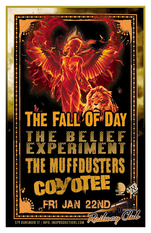. Friday, January 22nd IMU presents The FALL OF THE DAY, The BELIEF EXPERIMENT, COYOTEE The Band & The MUFFDUSTERS @ The Railway Club, 579 Dunsmuir . Show 9:30pm / $10 cover