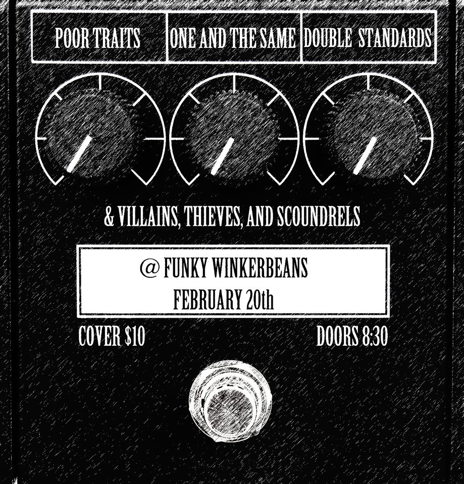 POOR TRAITS, One And The Same, Double Standards, VILLAINS THIEVES AND SCOUNDRELS @ Funky Winker Beans Feb 20 2016 - Nov 13th @ Funky Winker Beans