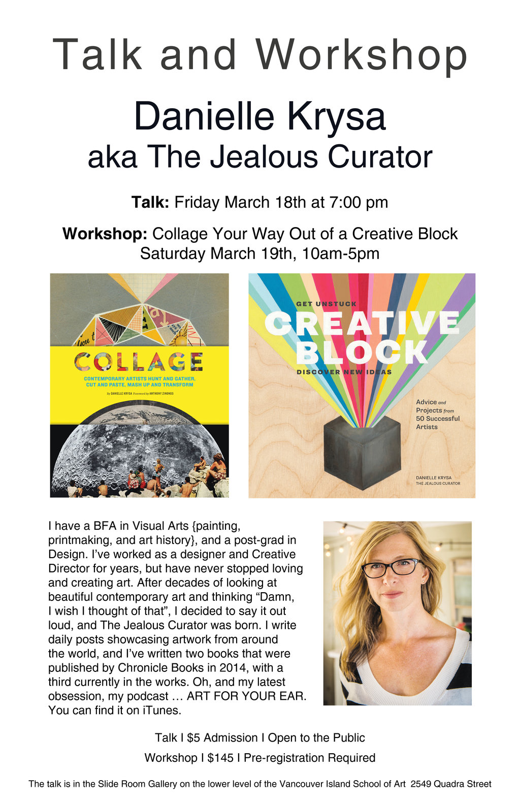 Artist Talk, Danielle Krysa, aka The Jealous Curator @ Slide Room Gallery, lower level, Vancouver Island School of Art Mar 18 2016 - Dec 31st @ Slide Room Gallery, lower level, Vancouver Island School of Art