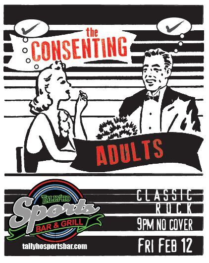 Everyone will give you permission when you tell them that Consenting Adults is playing at the Tally-Ho Sports Bar & Grill.