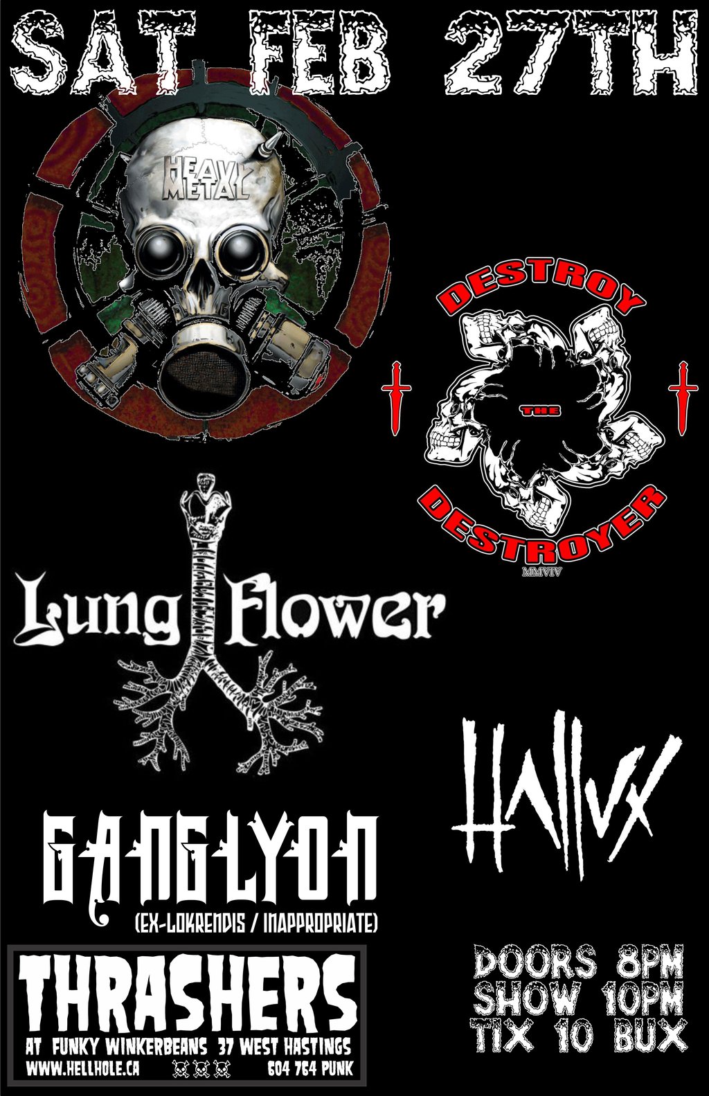 Destroy the Destroyer , Lungflower, HALLUX, GANGLYON @ Funky Winker Beans Feb 27 2016 - Feb 15th @ Funky Winker Beans