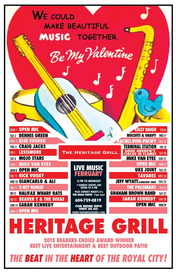 Saturday, February 20, 2016 - The Heritage Grill, 447 Columbia St. New Westminster, B.C. V3L 1A9.