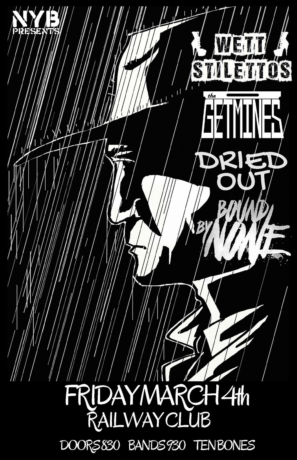 Wett Stilettos , The Getmines, Dried Out, Bound By None @ Railway Club Mar 4 2016 - Feb 20th @ Railway Club