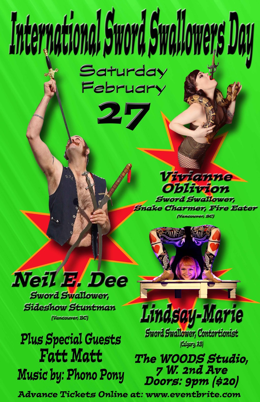 We are very excited to bring you Vancouver's first annual gathering for International Sword Swallowers Day.