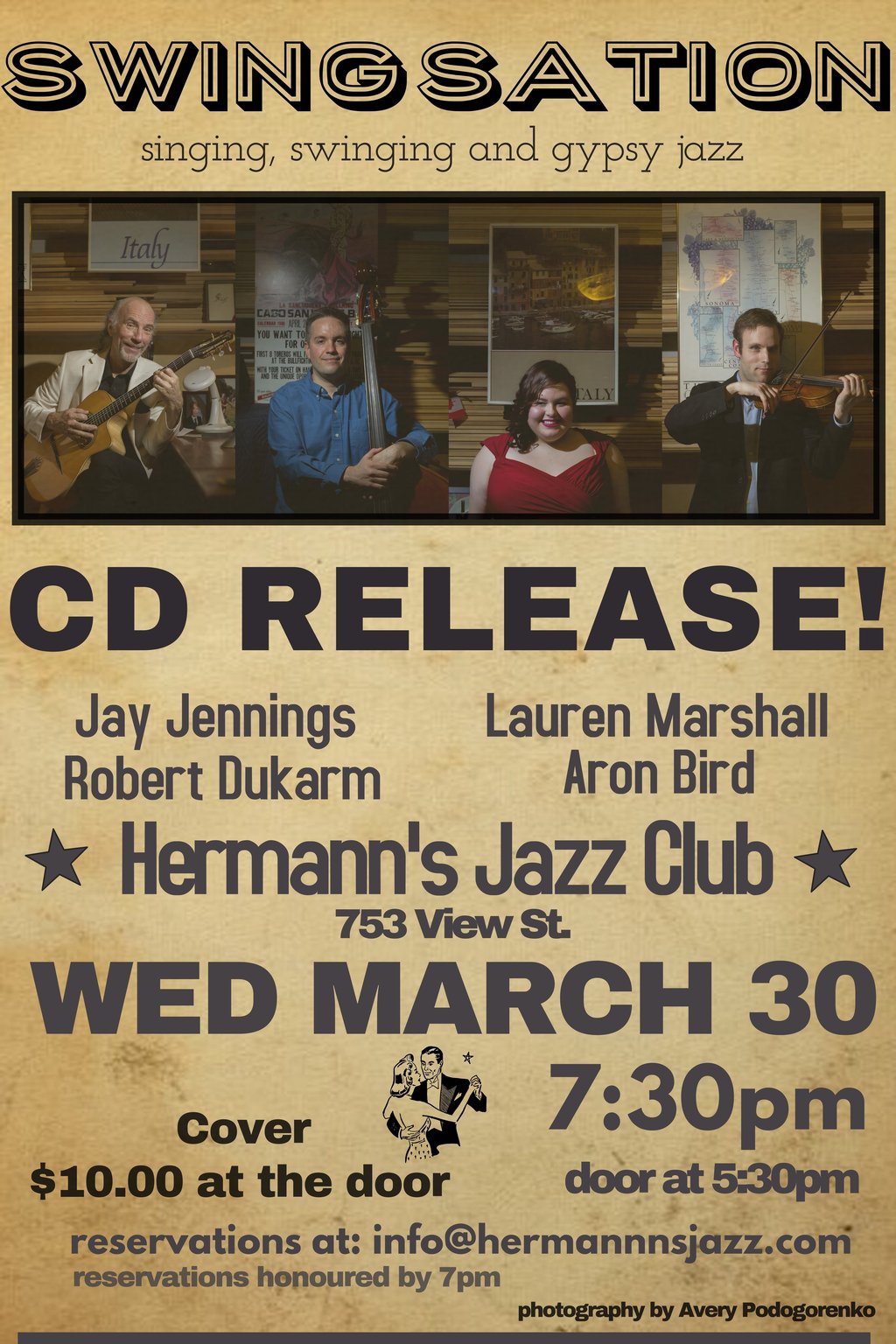 Swingsation is a four piece band inspired by the music of Django Reinhardt. The band consists of Lauren Marshall on vocals, Jay Jennings on guitar, Robert Dukarm on violin and Aron Bird on double bass. They are excited to release their EP into the world. Hot Off The Strings a mix of Swing, Gypsy and Latin.