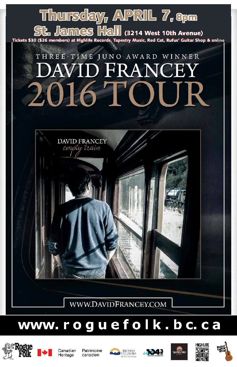 David Francey @ St. James Community Hall Apr 7 2016 - Feb 20th @ St. James Community Hall