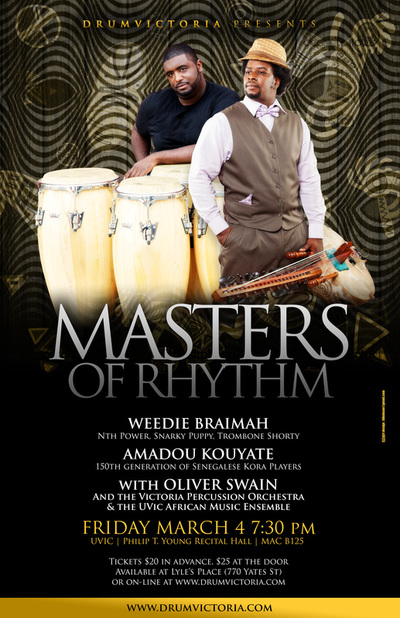 MASTERS OF RHYTHM: Weedie Braimah, Amadou Kouyte, Oliver Swain, The Victoria Percussion Ensemble, The Uvic African Music Ensemble @ Phillip T. Young Recital Hall (Uvic) Mar 4 2016 - Feb 20th @ Phillip T. Young Recital Hall (Uvic)