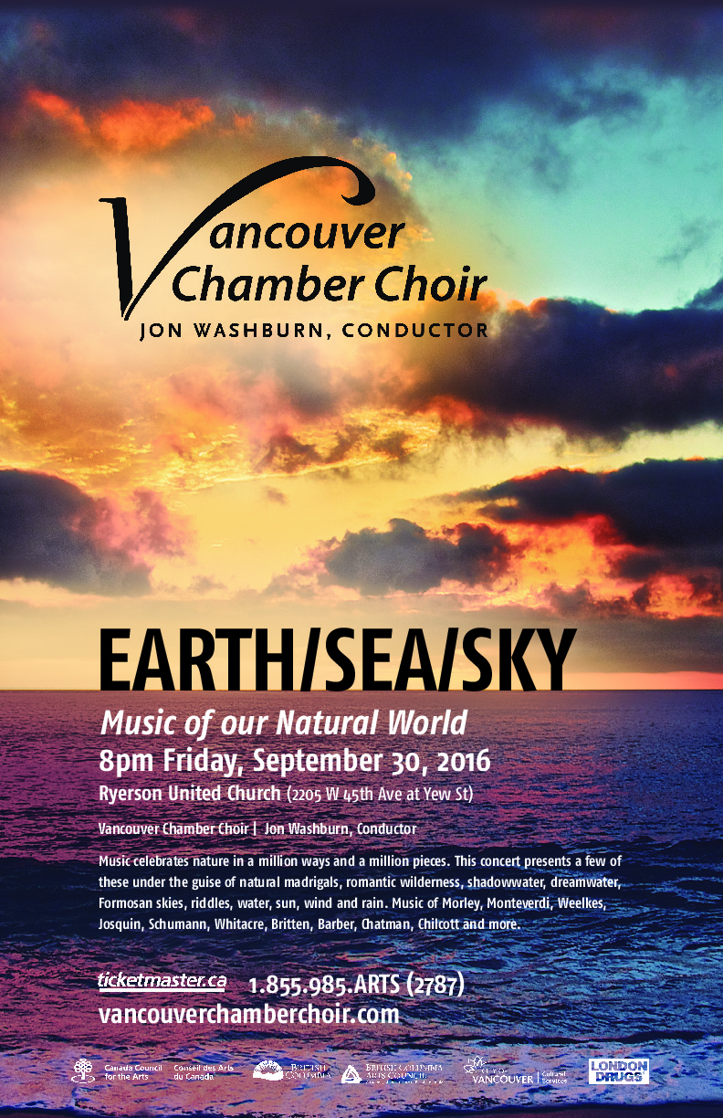 EARTH/SEA/SKY - Music of our Natural World: Vancouver Chamber Choir, Jon Washburn (Conductor) @ Ryerson United Church Sep 30 2016 - Feb 20th @ Ryerson United Church