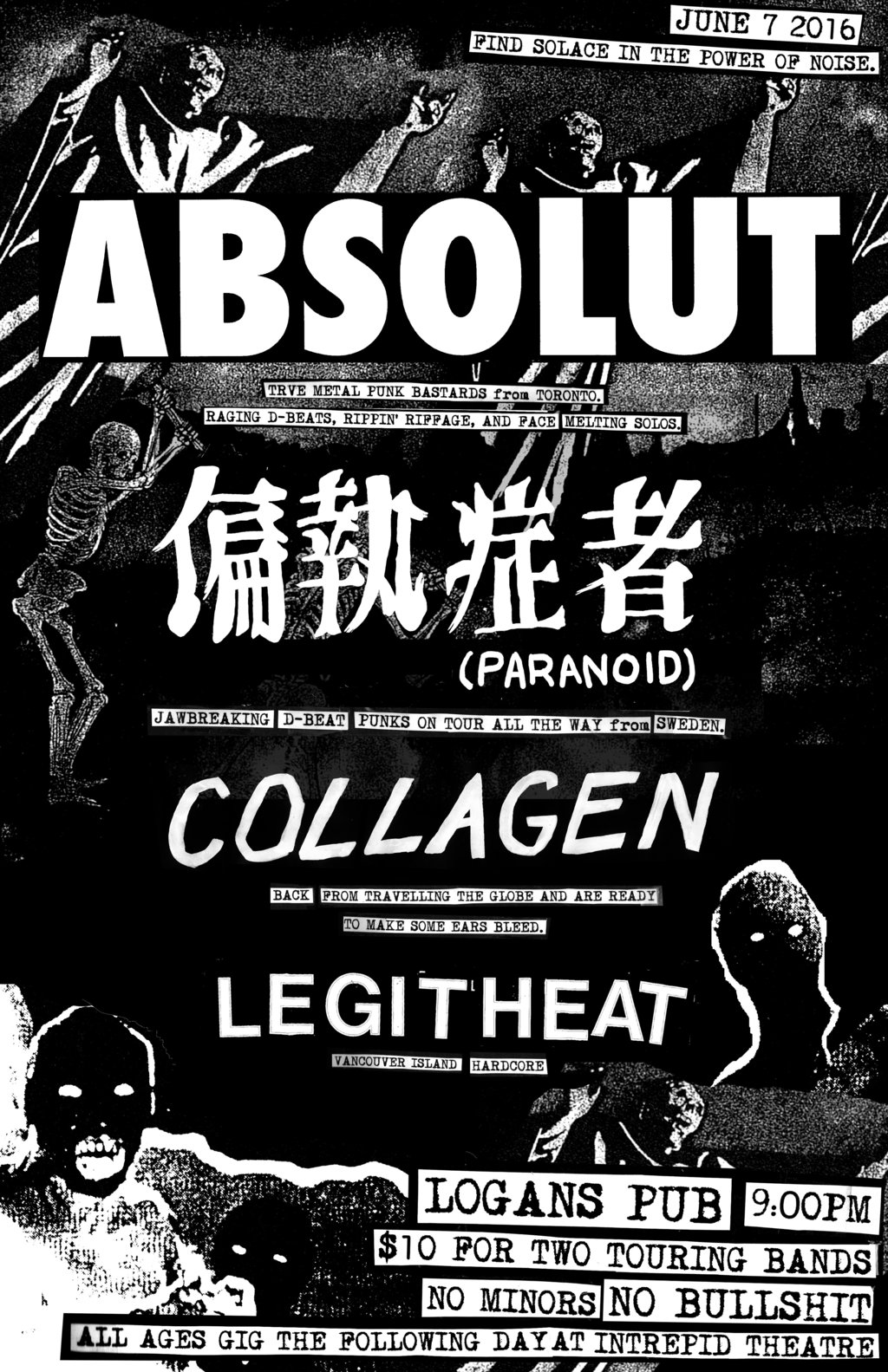 PUNK CHAOS AT LOGANS: Absolut (Toronto, On), Paranoid (Froson, Sweden), Collagen, Legit Heat