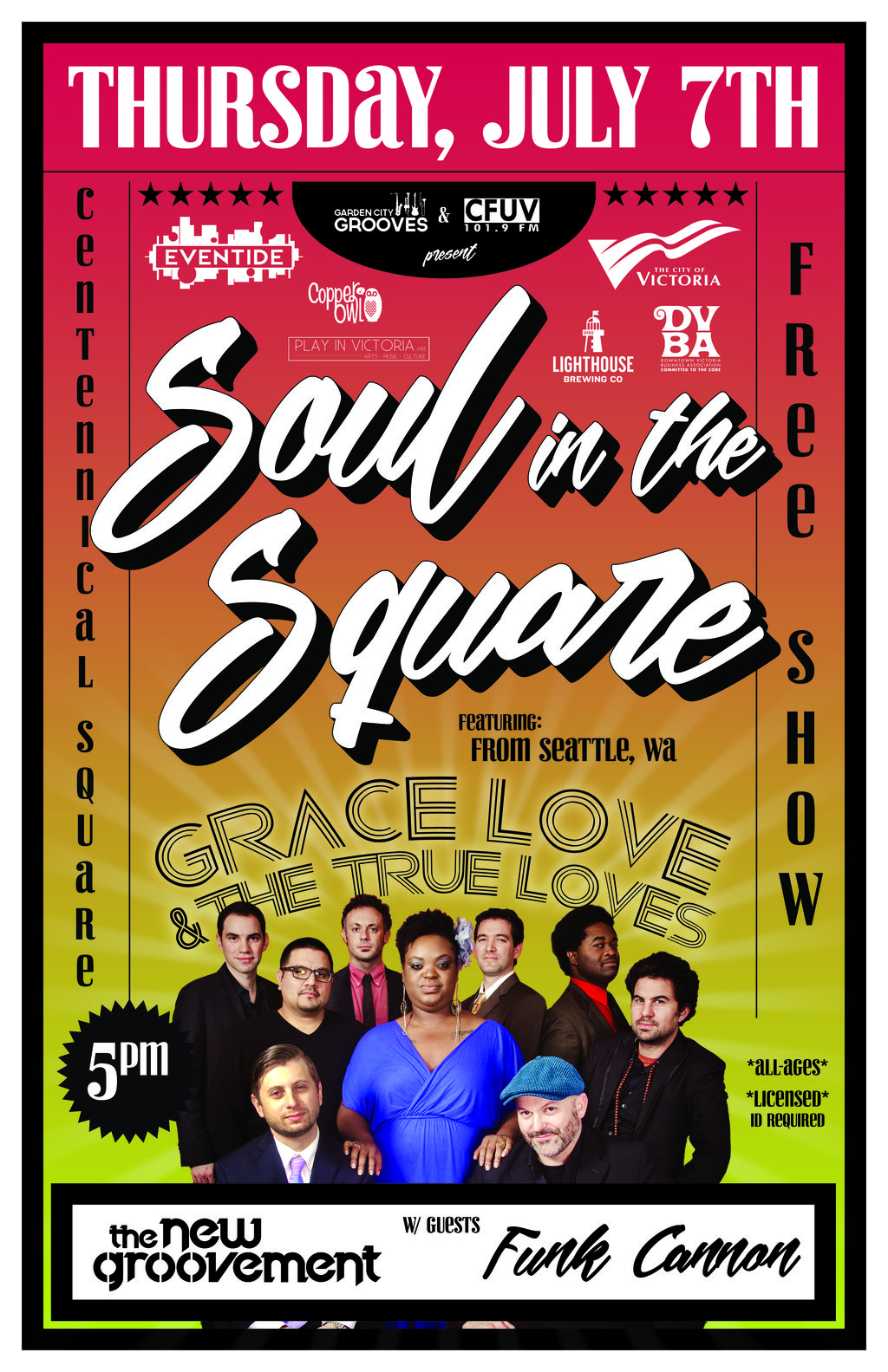 Eventide Music Series: Grace Love & the True Loves, The New Groovement, Funk Cannon @ Centennial Square Jul 7 2016 - Feb 21st @ Centennial Square