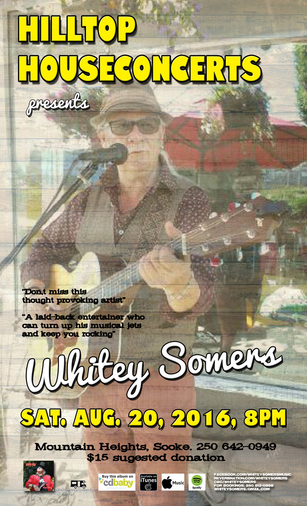 Whitey Somers @ Hilltop House Concerts Aug 20 2016 - Feb 14th @ Hilltop House Concerts