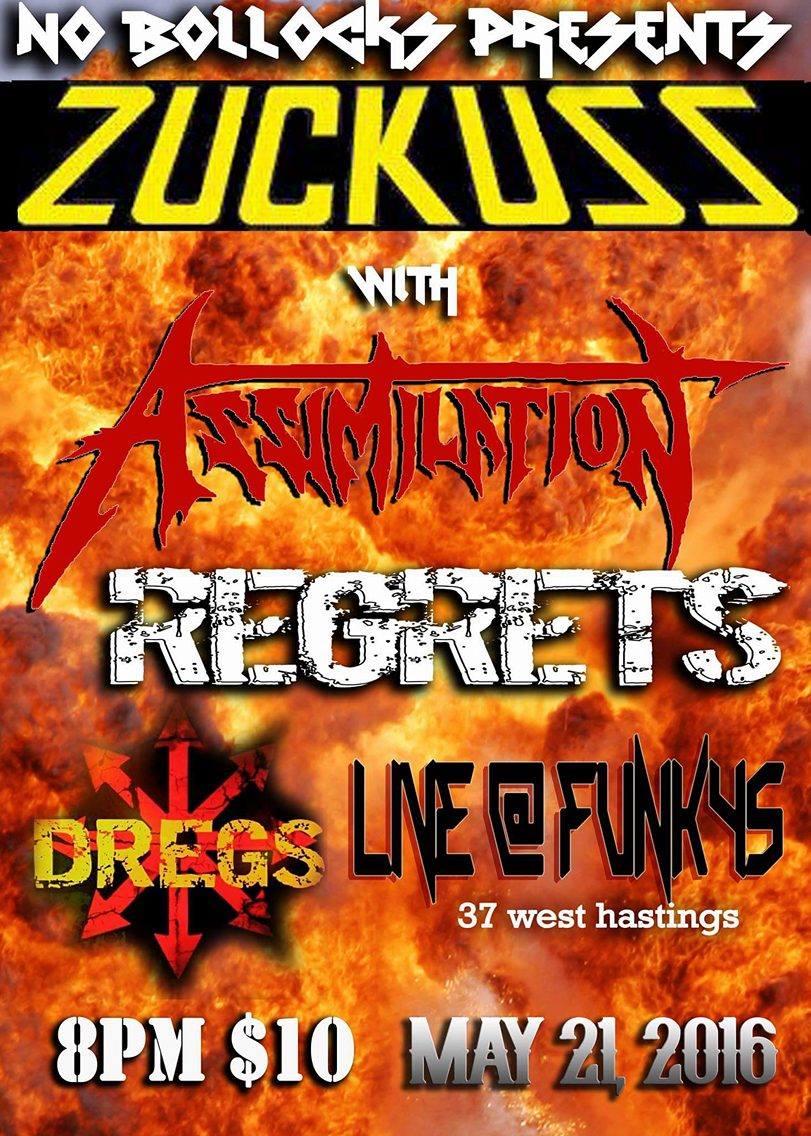 Zuckuss, Assimilation, Regrets, Dregs @ Funky Winker Beans May 21 2016 - Feb 27th @ Funky Winker Beans