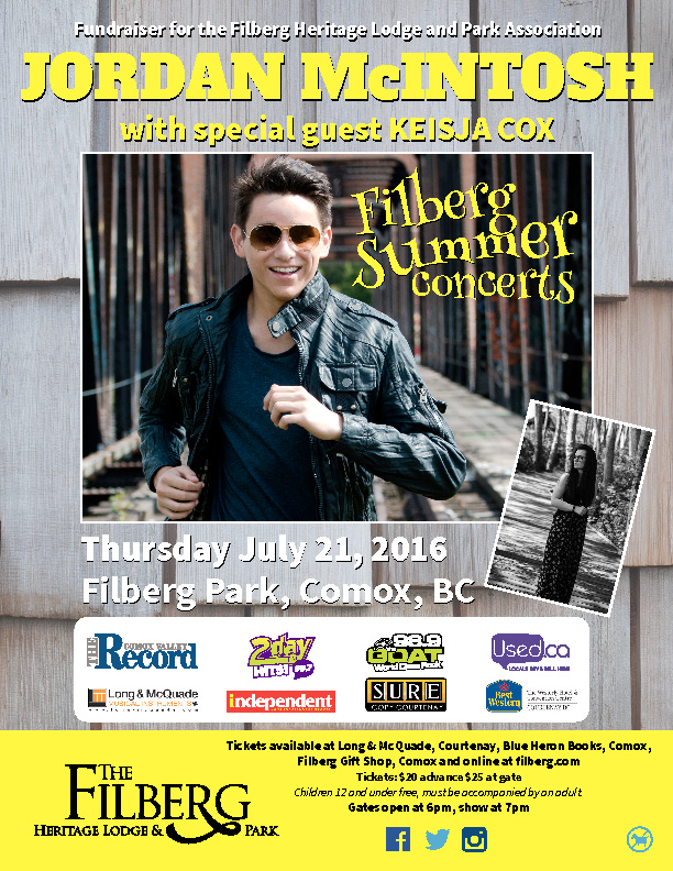 Join us for another sunny season of live outdoor entertainment in Filberg Park. Hot summer nights really are the best way to take in Country music's latest rising star and hear music from his newly released album, currently climbing the Candian music charts. His undenyable talents and genuine song writing will Steal Your Heart and make you believe your living in a country song. You won't want to miss this truly exceptional opportunity to spend an evening with Jordan Mcintosh in Filberg Park.