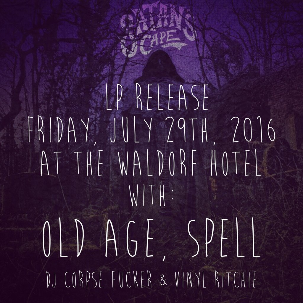 Satan's Cape LP Release Show: Satan's Cape, Spell, Oldage, DJ Corpse Fucker   (all night), DJ Vinyl Ritchie (Tiki Room) @ The Waldorf Jul 29 2016 - Feb 10th @ The Waldorf