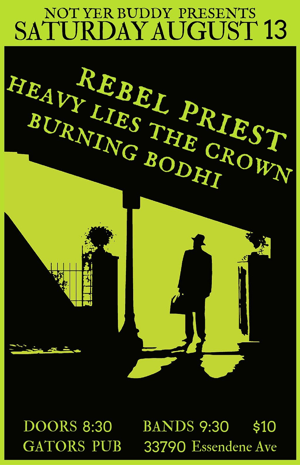 Rebel Priest, Heavy Lies The Crown, Burning Bodhi @ Gator's Pub Aug 13 2016 - Feb 12th @ Gator's Pub
