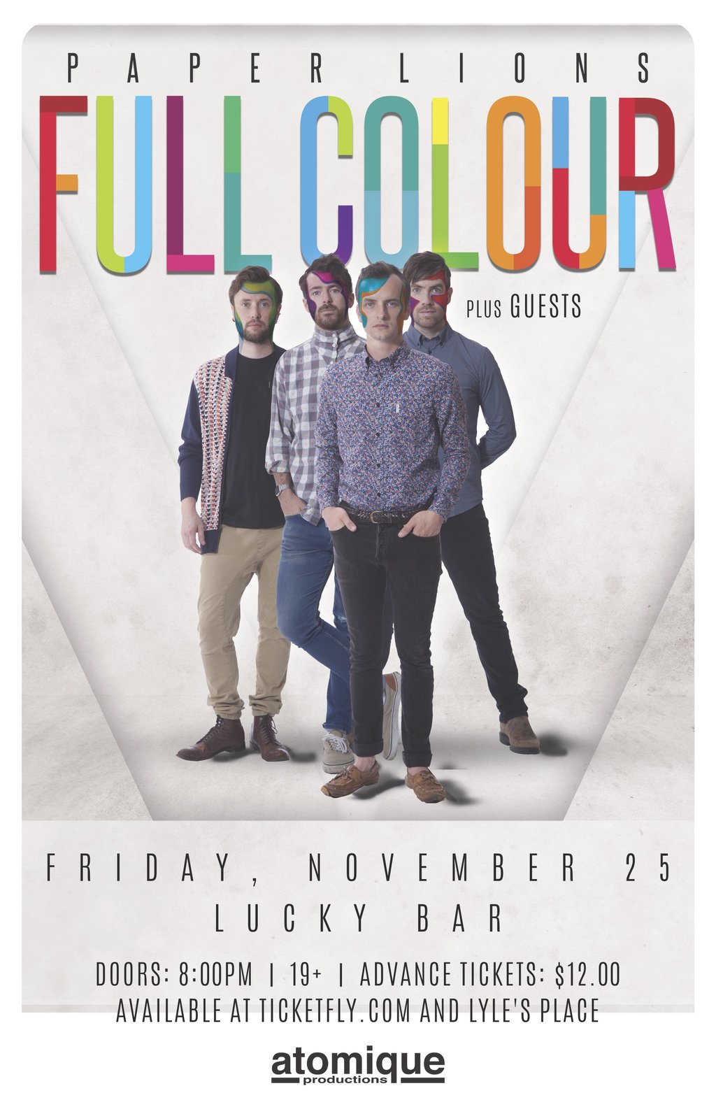 Paper Lions has been working on their new album Full Colour for the past two years and the reaction to the first singles Believer and Call Back have been very strong. The band spends most days in a studio working and re-working songs. Their process for this record is, to them, novel. Previously, they would write songs in a jam space, take them on the road, then spend a month in the studio. This time around, the band went right to the studio, recording songs three to four times before deciding on a final version.