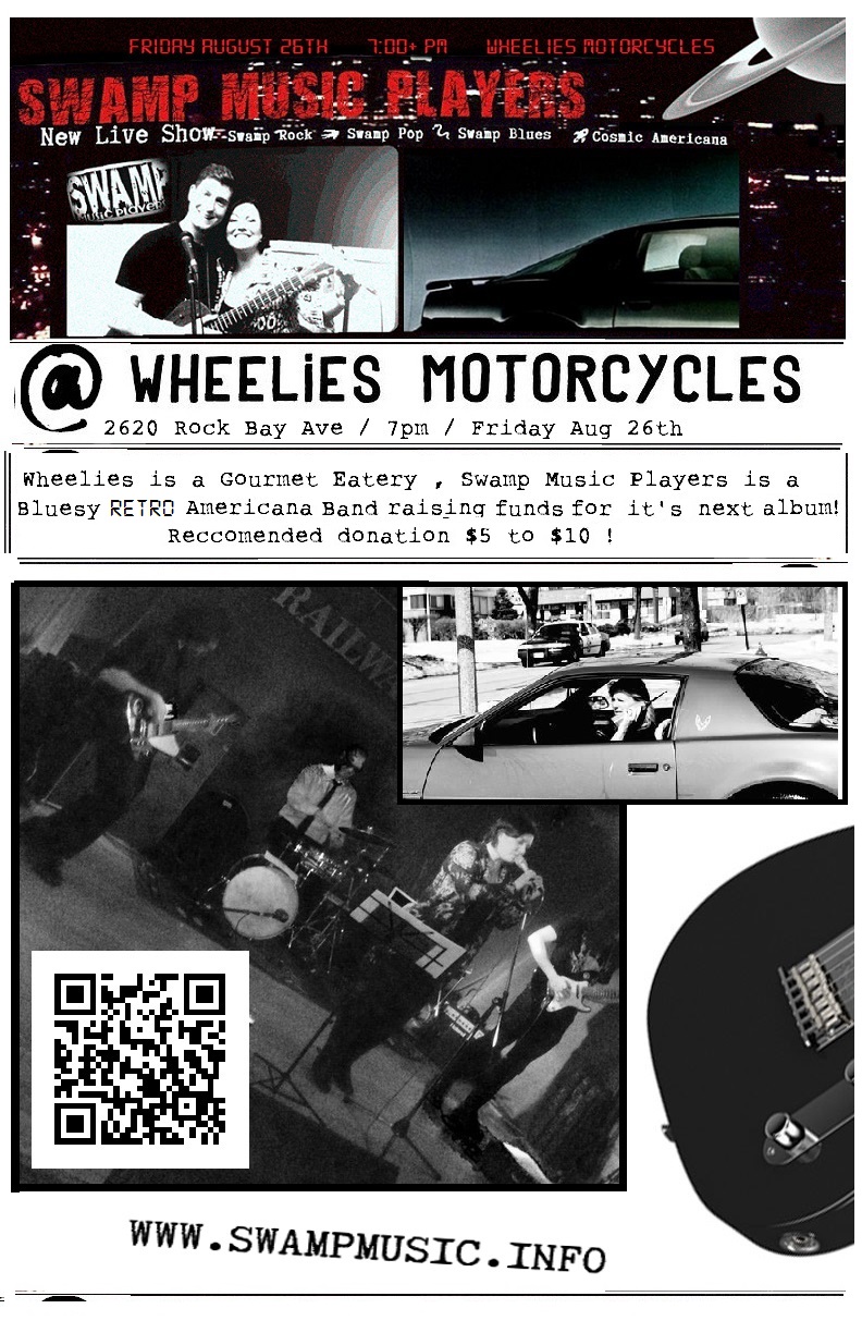 Swamp Music Players at Wheelies Motorcycles - Friday Aug 26th !