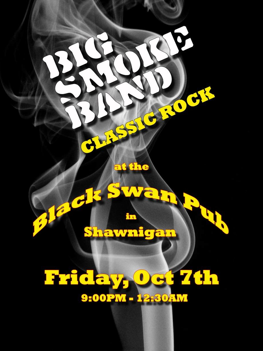 Big Smoke is super pleased to announce we will be playing at the Black Swan in Shawnigan Friday Oct 7th 9:00 - 12:30PM. Come on out and Join Us!!! Will be a fun night and the drive is nothin!