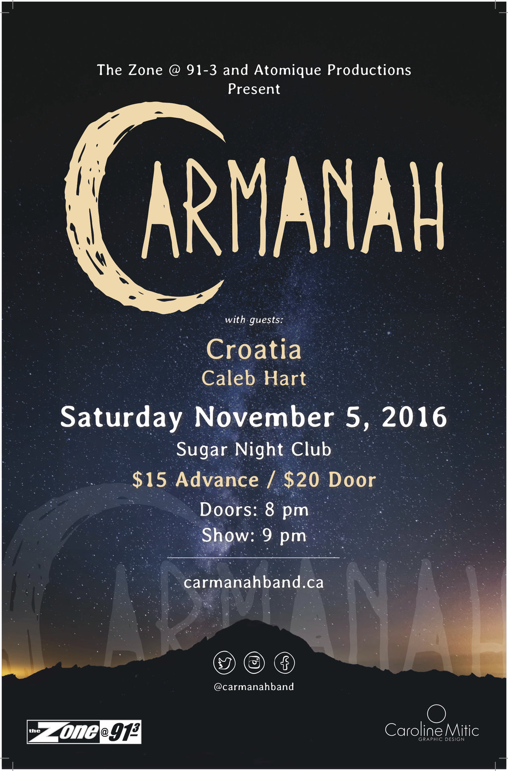 Increasingly known for its original songwriting and energetic delivery, Carmanah is a growing presence in the Canadian music scene.