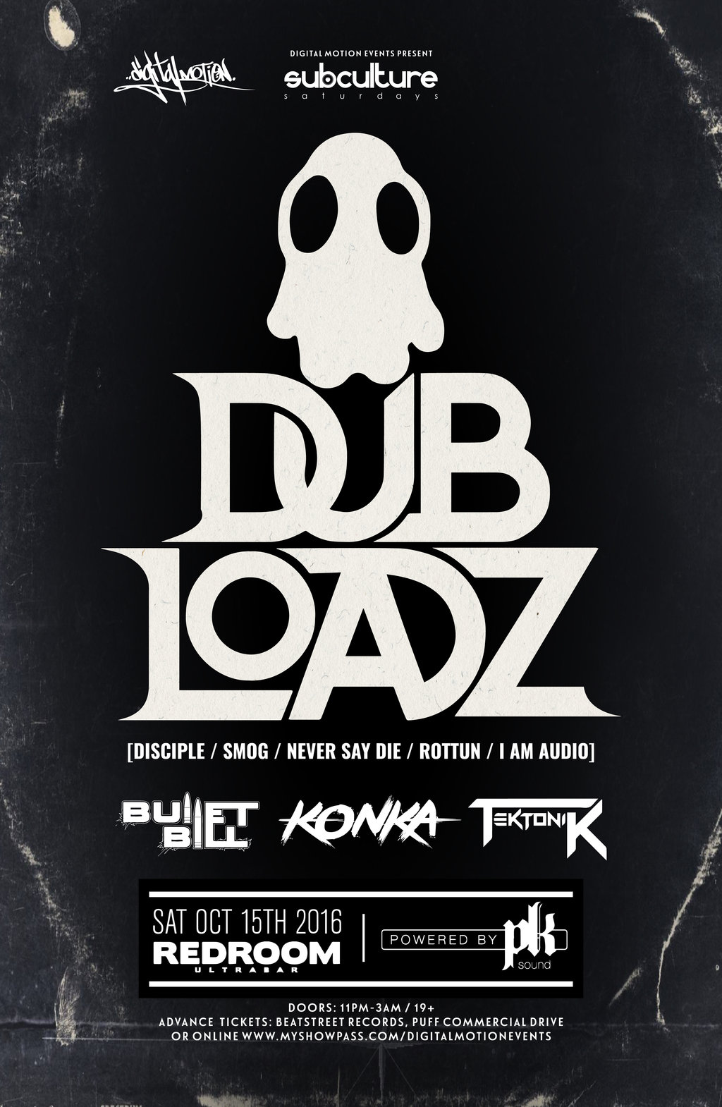 Dubloadz  (Disciple), Bullet Bill , KONKA, Tektonik @ The Red Room Oct 15 2016 - Jan 11th @ The Red Room
