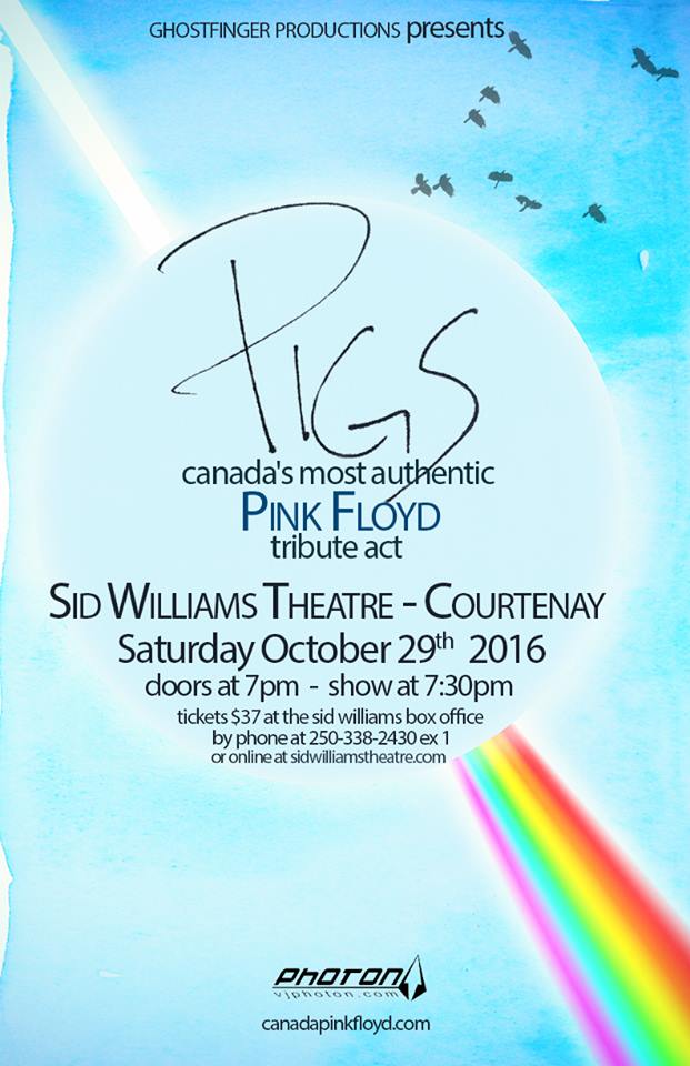 Canada’s Most Authentic Pink Floyd Tribute will be bringing their critically acclaimed show to select venues this fall. Their INSIDE & OUT show is packed full of all the classic Floyd favourites – from A Saucerful Of Secrets to The Division Bell – and for the first time ever, PIGS will be performing a number of Floydian solo songs from The Pros And Cons Of Hitchhiking to Rattle That Lock.