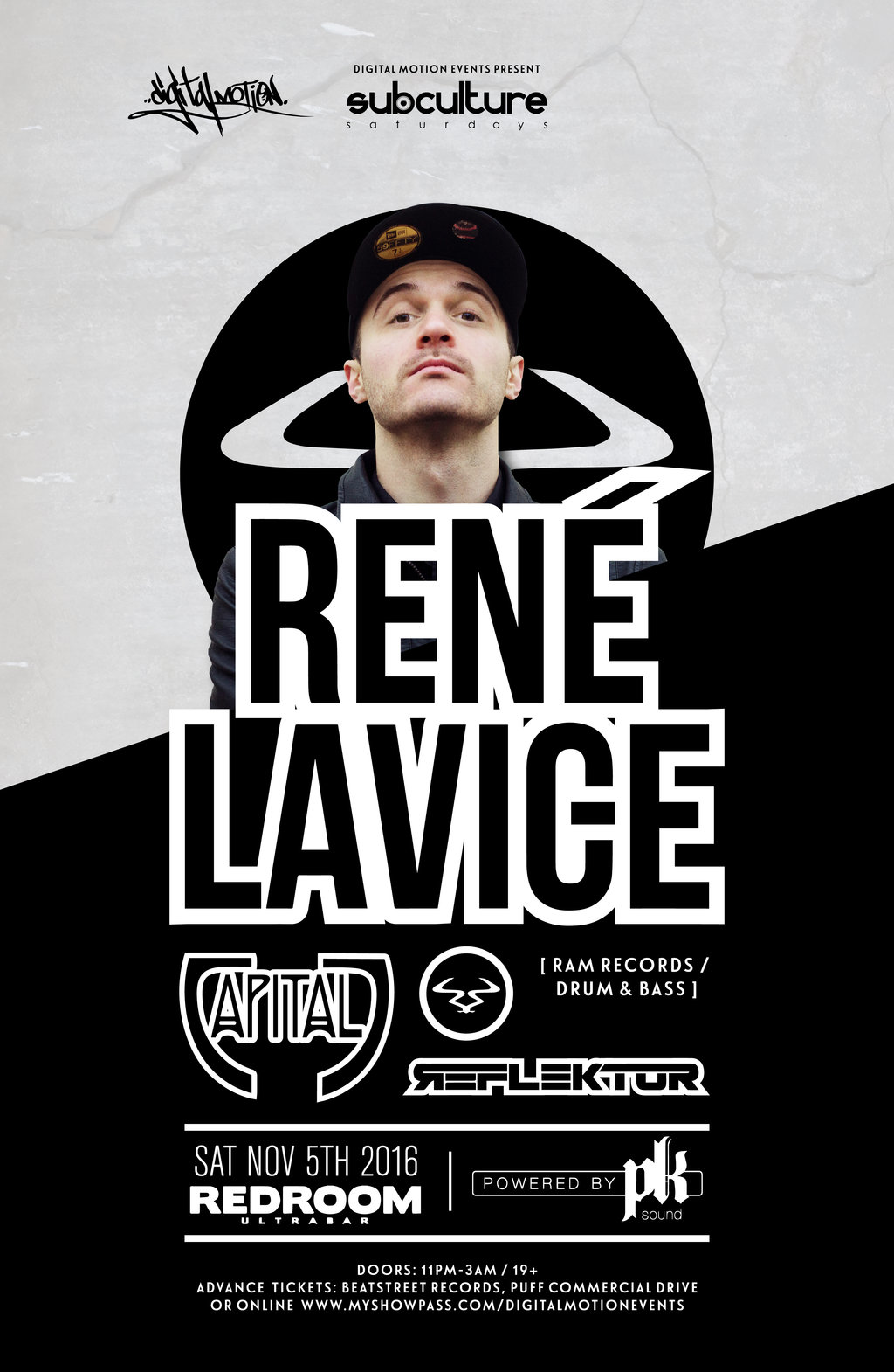 Rene LaVice [Ram Records] w/ Capital J at SUBculture Saturdays @ The Red Room Nov 5 2016 - Jan 11th @ The Red Room