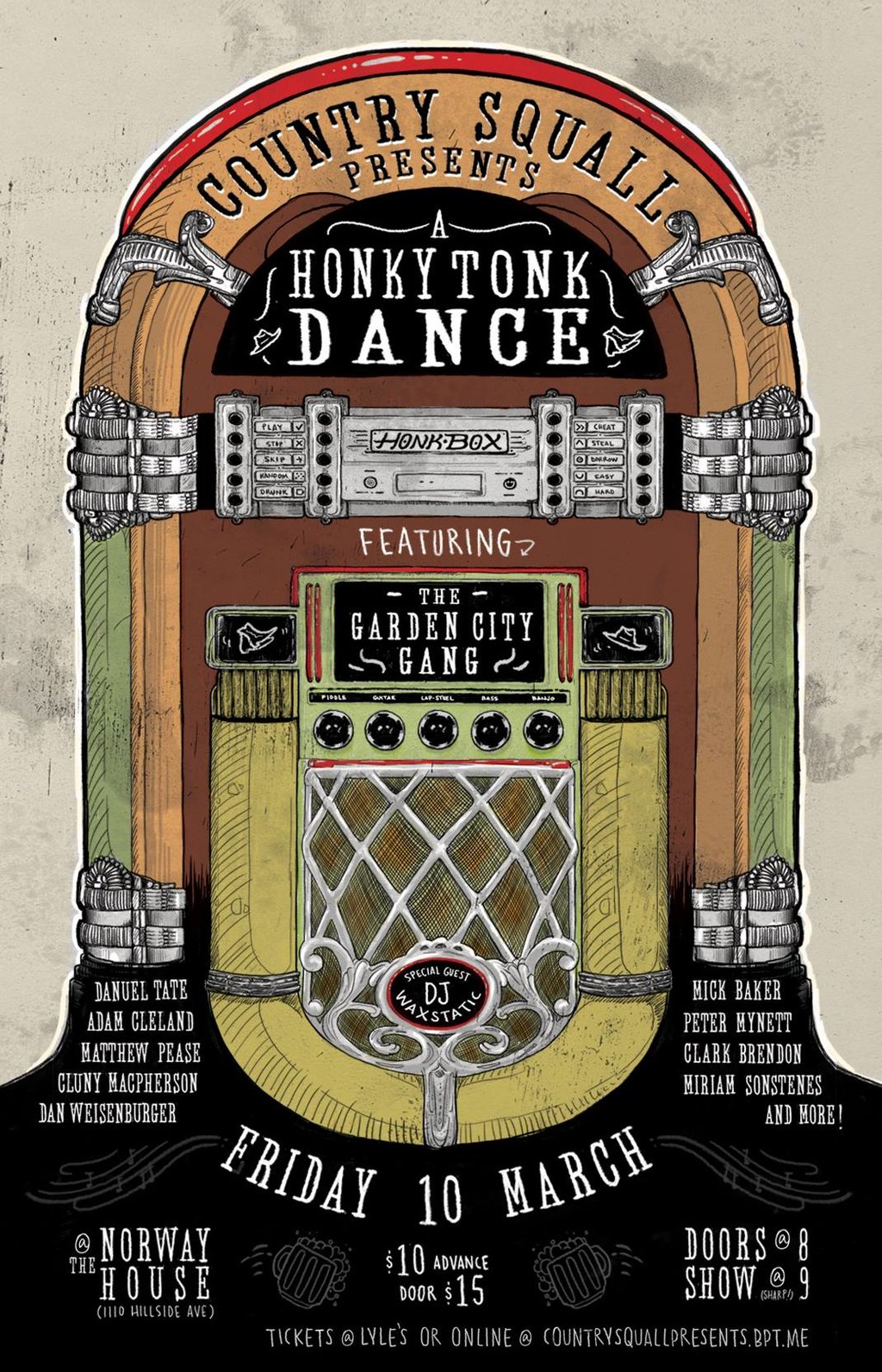 Country Squall presents a Honky Tonk Dance: Dan Weisenburger, Cluny Macpherson , Miriam Sonstenes , Matthew Pease, Adam Cleland, Danuel Tate, Peter Mynett, Mick Baker, Clark Brendon, DJ Waxstatic