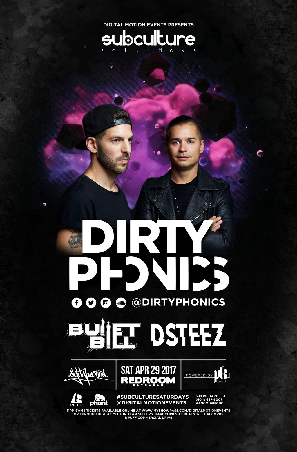 Check out our other shows on the horizon for #SUBcultureSaturdays - We've been providing Vancouver with the best in Bass + culture every saturday night at The Red Room since April 2014. Venue sound is powered by Vancouver's first official PK SOUND installation.
