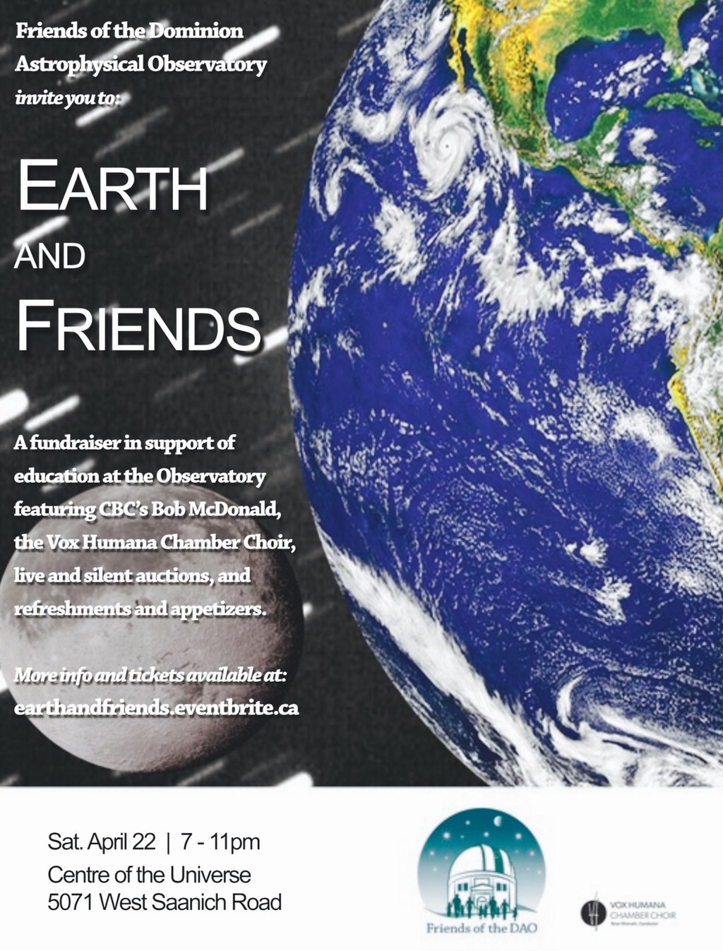 The 2017 Friends of Dominion Astrophysical Observatory Society (FDAO) “Earth and Friends” fundraiser marks our second year of raising funds for astronomy and science education on Southern Vancouver Island.