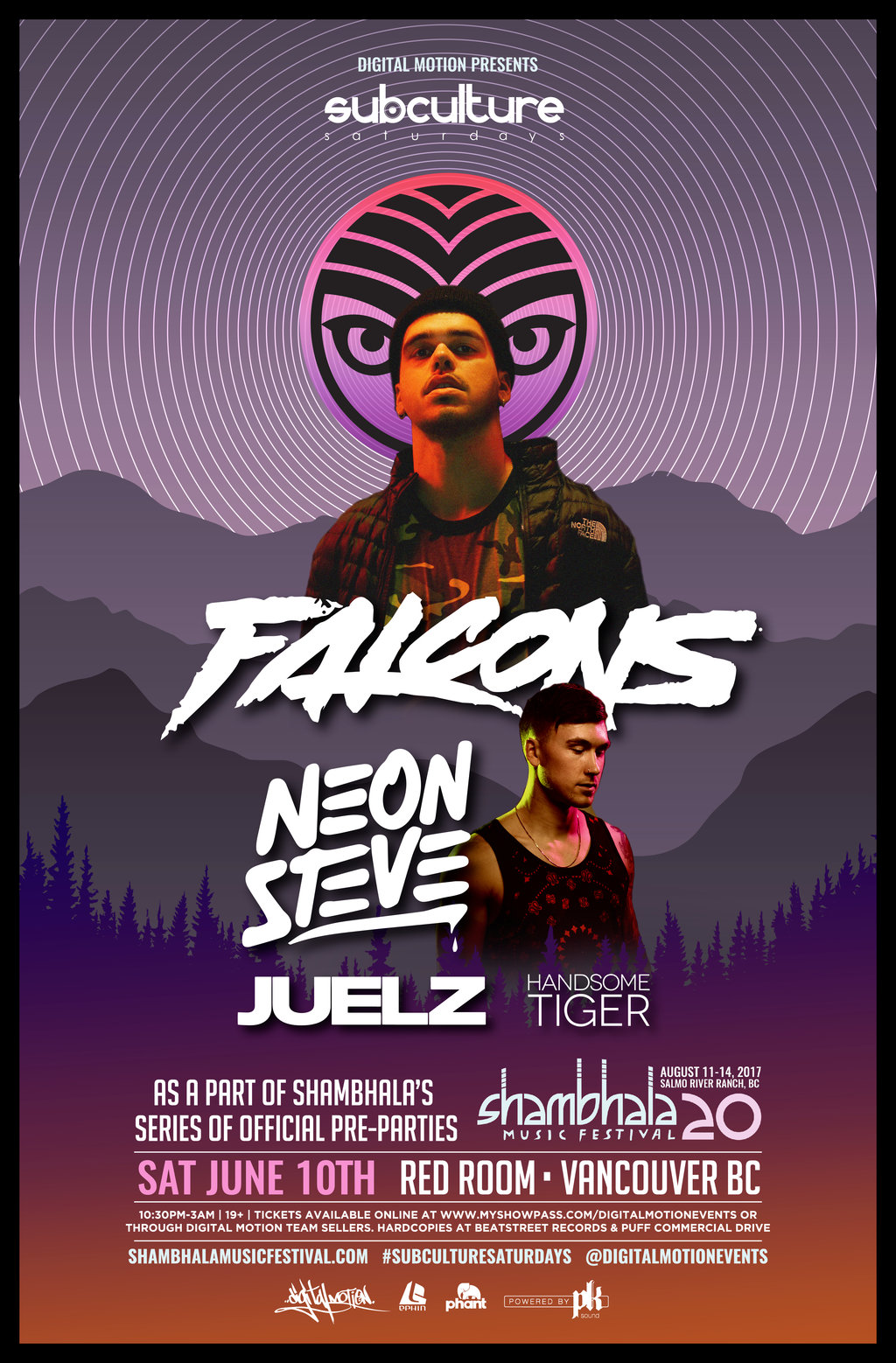 Falcons and Neon Steve Official Shambhala Pre Party Vancouver at SUBculture Saturdays @ The Red Room Jun 10 2017 - Jan 13th @ The Red Room