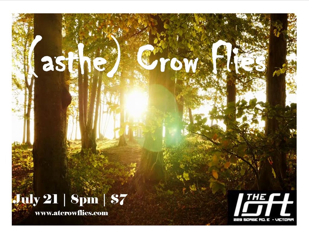 Starting with sheets of poetry and acoustic guitars in dimly lit basement apartments and finishing with inventive rock arrangements on the stages of western Canada, As the Crow Flies brings it home with both psychedelic tones and soulful harmonies. Just ask their Victoria faithful, this band is not to be missed. A genre-defying syncopation that hits the hipsters, hippies, guzzlers, tokers, and even the styleless straight-laced in a place they forgot was there.