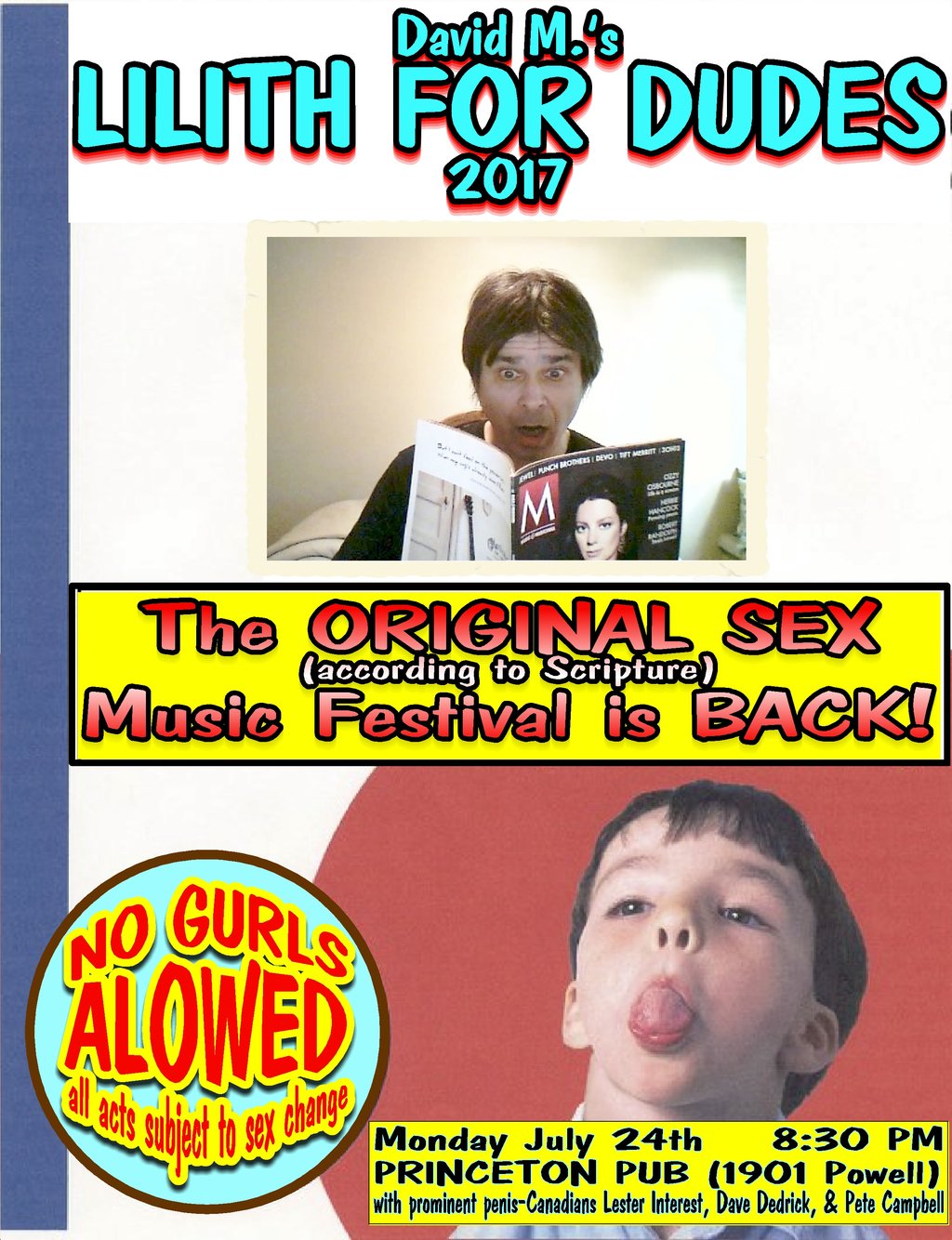 Look out, all opposite-sex music festivals - for the first time since 2010, the ORIGINAL-SEX (according to Scripture) music festival is back - David M.'s LILITH FOR DUDES!