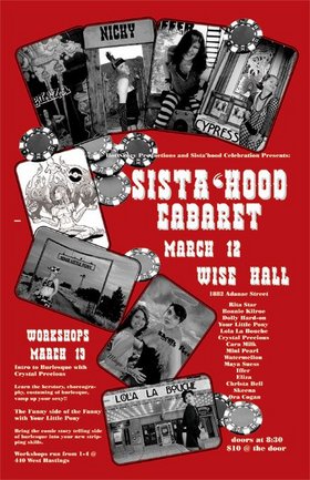 In collaboration with the Hot Saucy Girls, Sista'Hood 2005 brings you an evening of Burlesque, Music and Poetry. Join us for a Hot and Saucy night… dressing up strongly encouraged!
