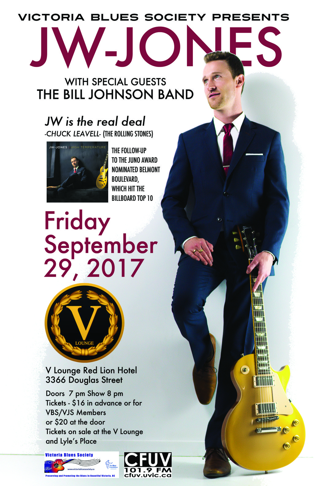IBC Winner and JUNO Award Nominee and Billboard Top 10 Blues artist JW-Jones tours constantly, and is known for his high-energy live shows.