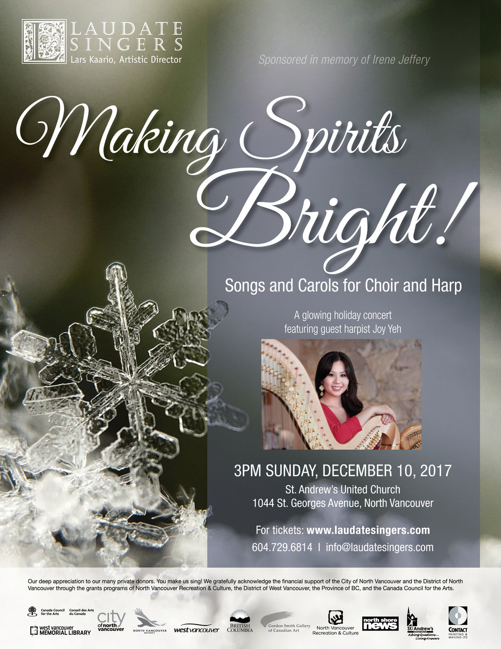 Laudate Singers and guest harpist Joy Yeh invite you to come in from the cold to candlelight and a celebration of the wonders of the Christmas season!