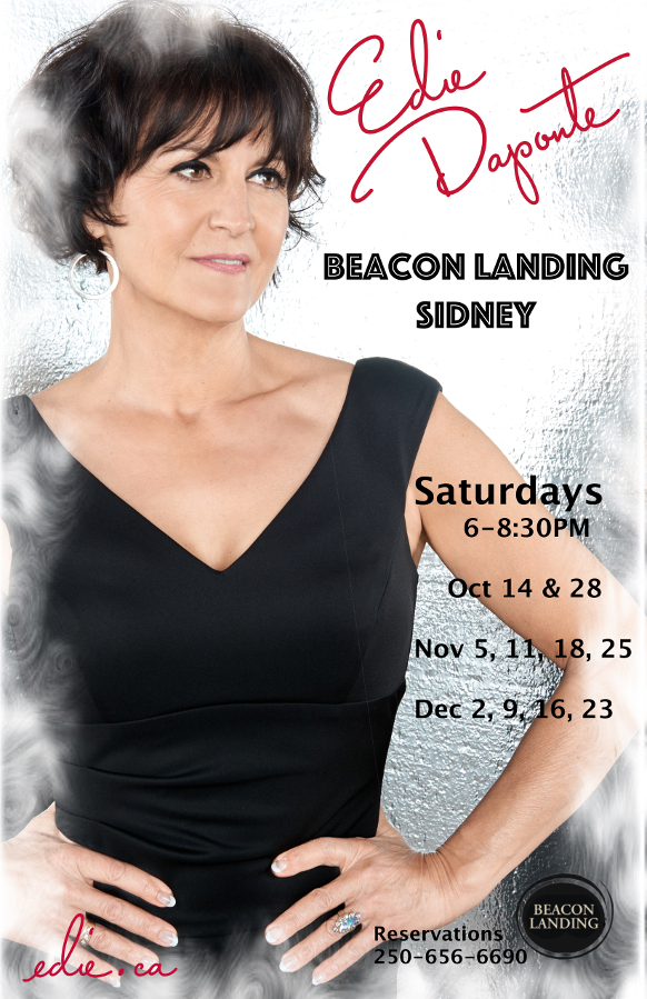 Join Edie Daponte every Saturday night at the seaside Beacon Landing in Sidney. She delivers an exquisite set of Jazz, Bossa Nova, Edith Piaf and originals with various accompanists includiing Joey Smith on guitar or Karel Roessingh or Jan Stirling on piano