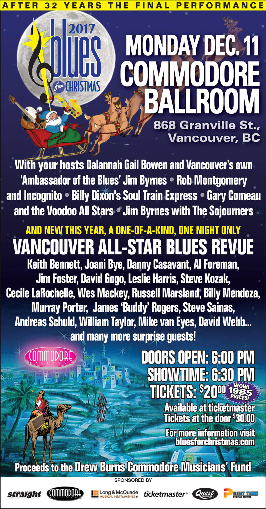 32nd and Final Blues for Christmas: Jim Byrnes and the Sojourners, Rob Montgomery and Incognito, Gary Comeau & The Voodoo Allstars, Billy Dixon's Soul Train Express, Blues All Star Revue